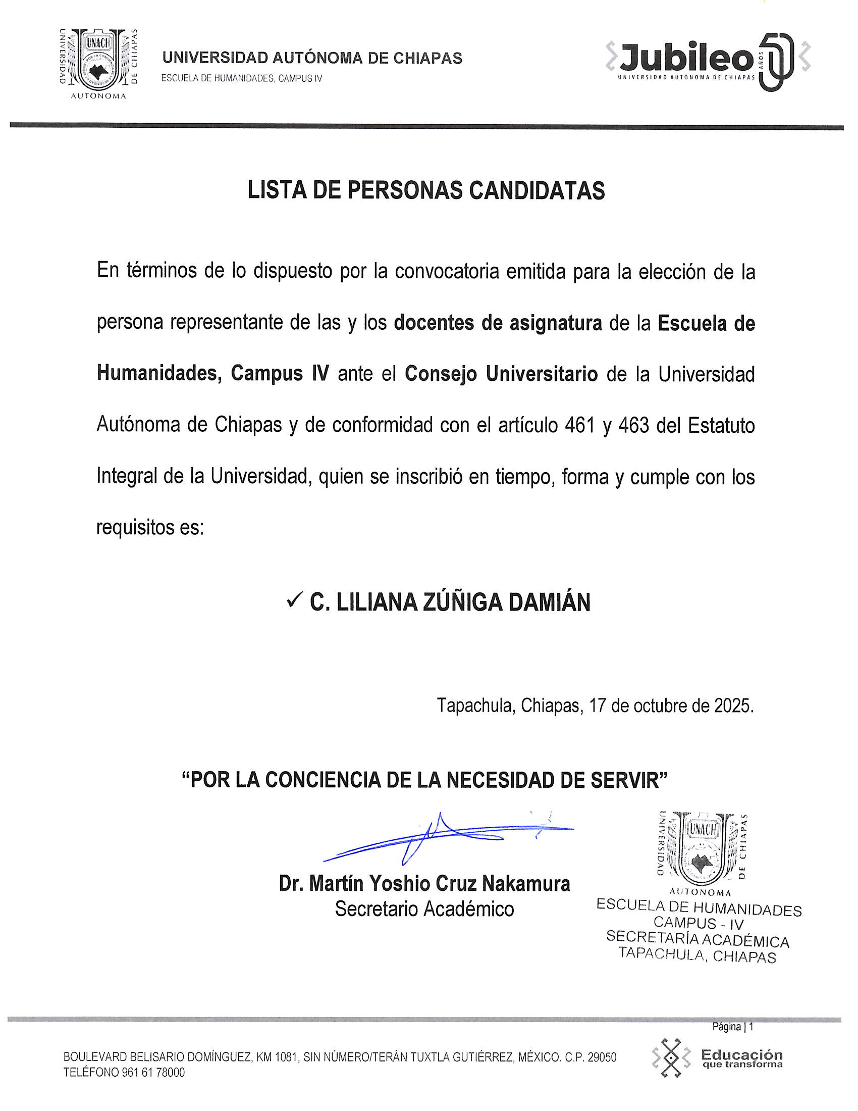 Lista de Personas Candidatas Ante el Consejo Universitario