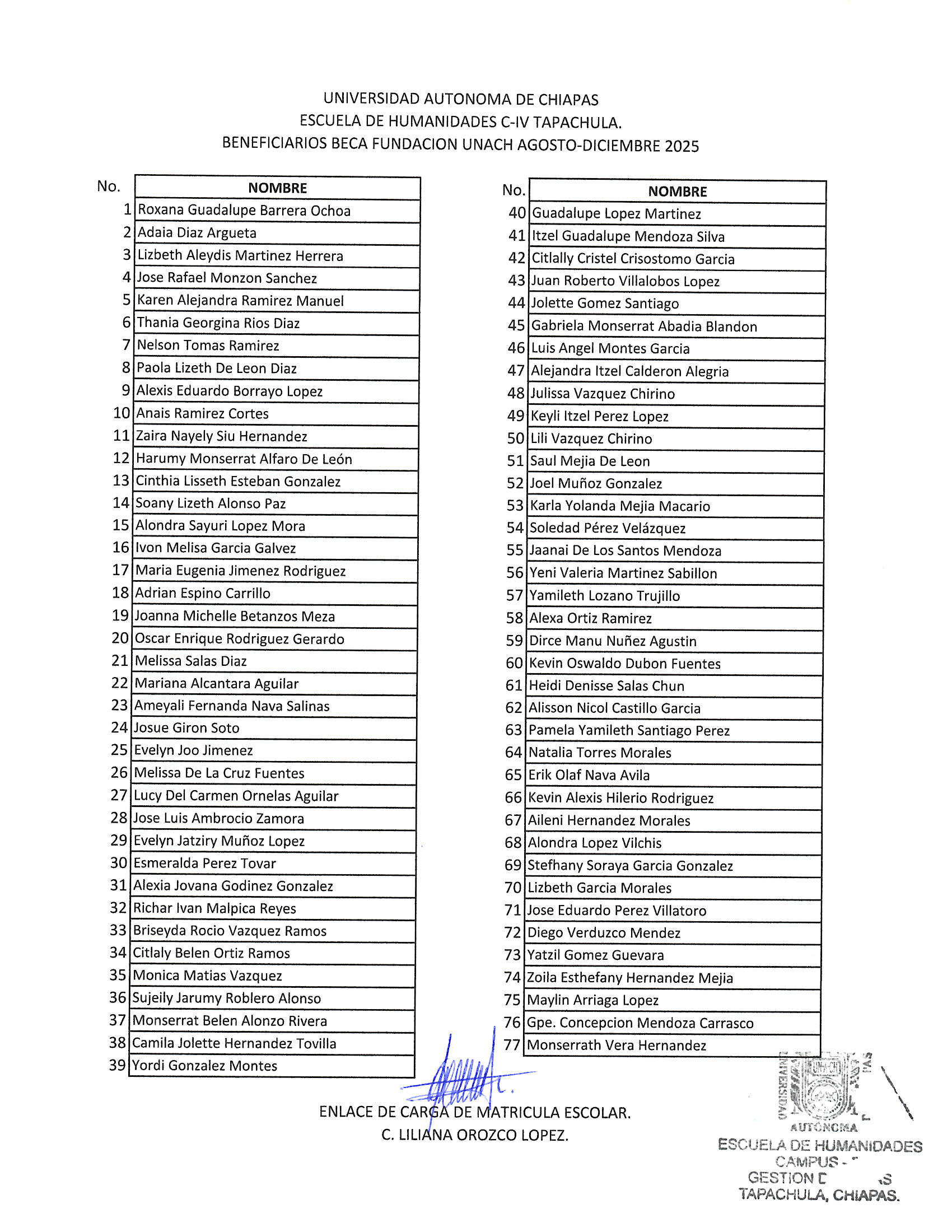 Resultados de la Beca Fundación UNACH Agosto-Diciembre 2025