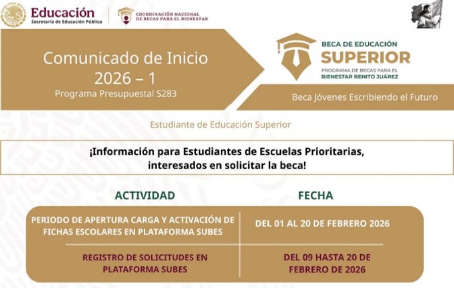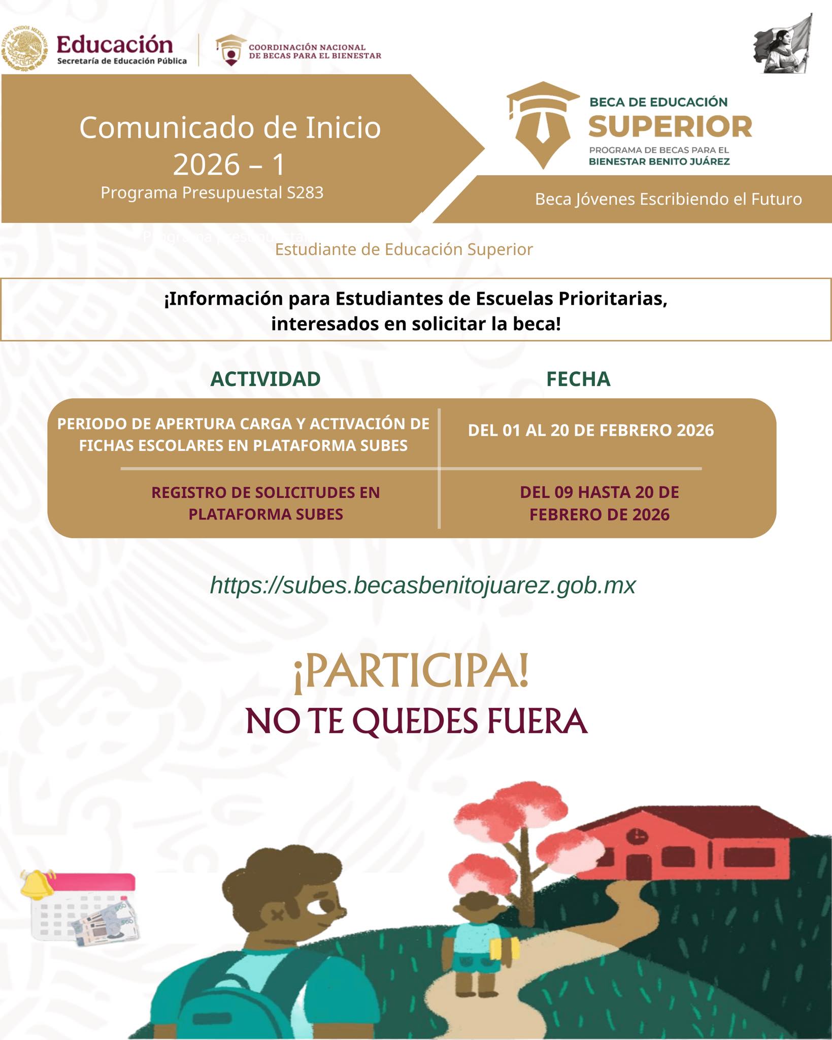 La Benemérita Universidad Autónoma de Chiapas a través de la #SIRESU, informa a los estudiantes de nuestra institución que la Coordinación Nacional de Becas para el Bienestar – CNBB ha emitido el Comunicado de Inicio para el programa Jóvenes Escribiendo el Futuro, dirigido a estudiantes inscritos en licenciaturas de modalidad ESCOLARIZADA de Instituciones Públicas PRIORITARIAS del País.