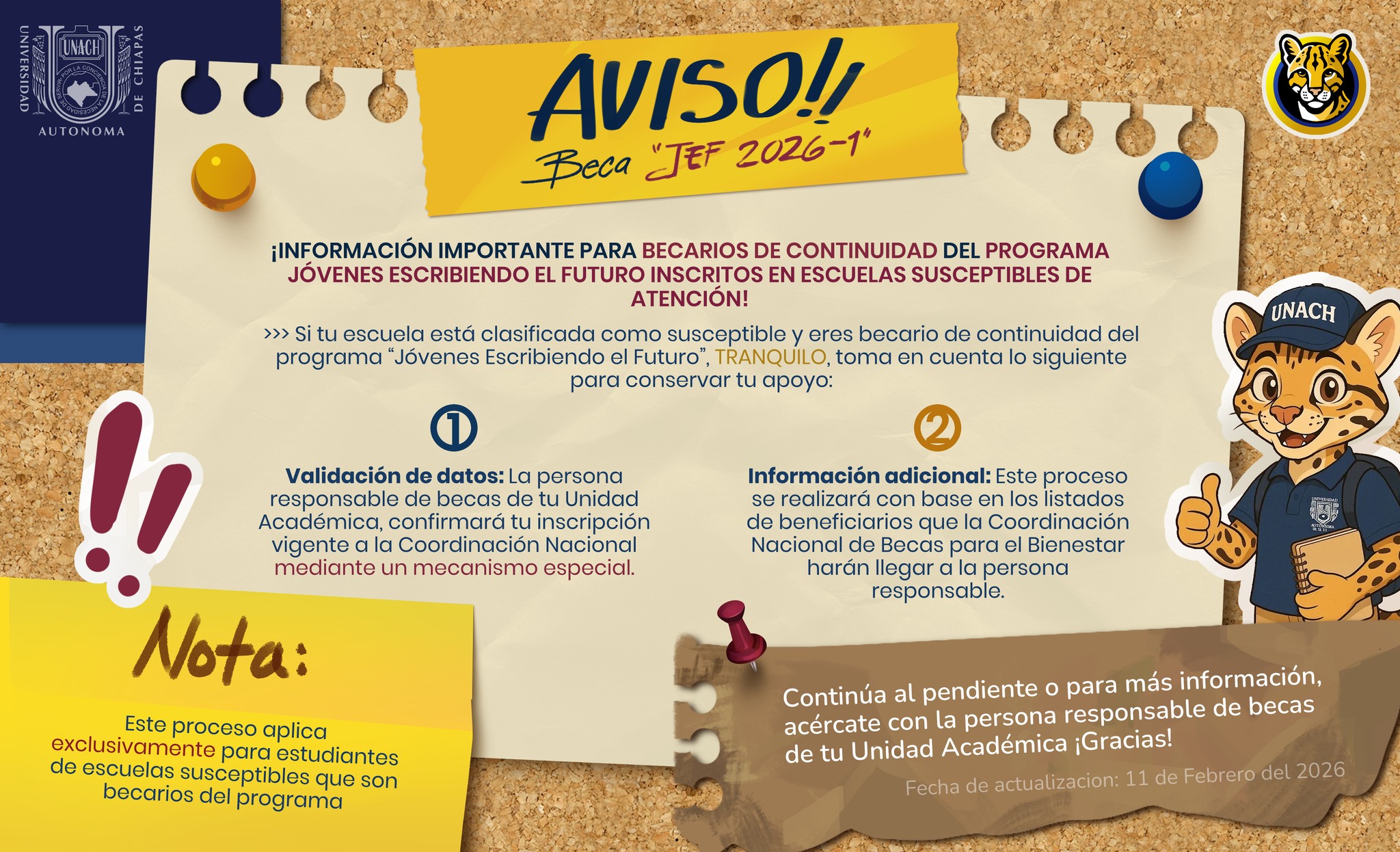 Atención Becarios de CONTINUIDAD Jóvenes Escribiendo el Futuro – JEF pertenecientes a Escuelas Susceptibles de Atención