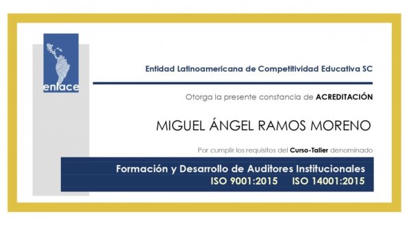 Felicitaciones al Lic. Miguel Ángel Ramos Moreno. Personal Administrativo de la Escuela de Humanidades C-IV por obtener la certificación como Auditor líder.