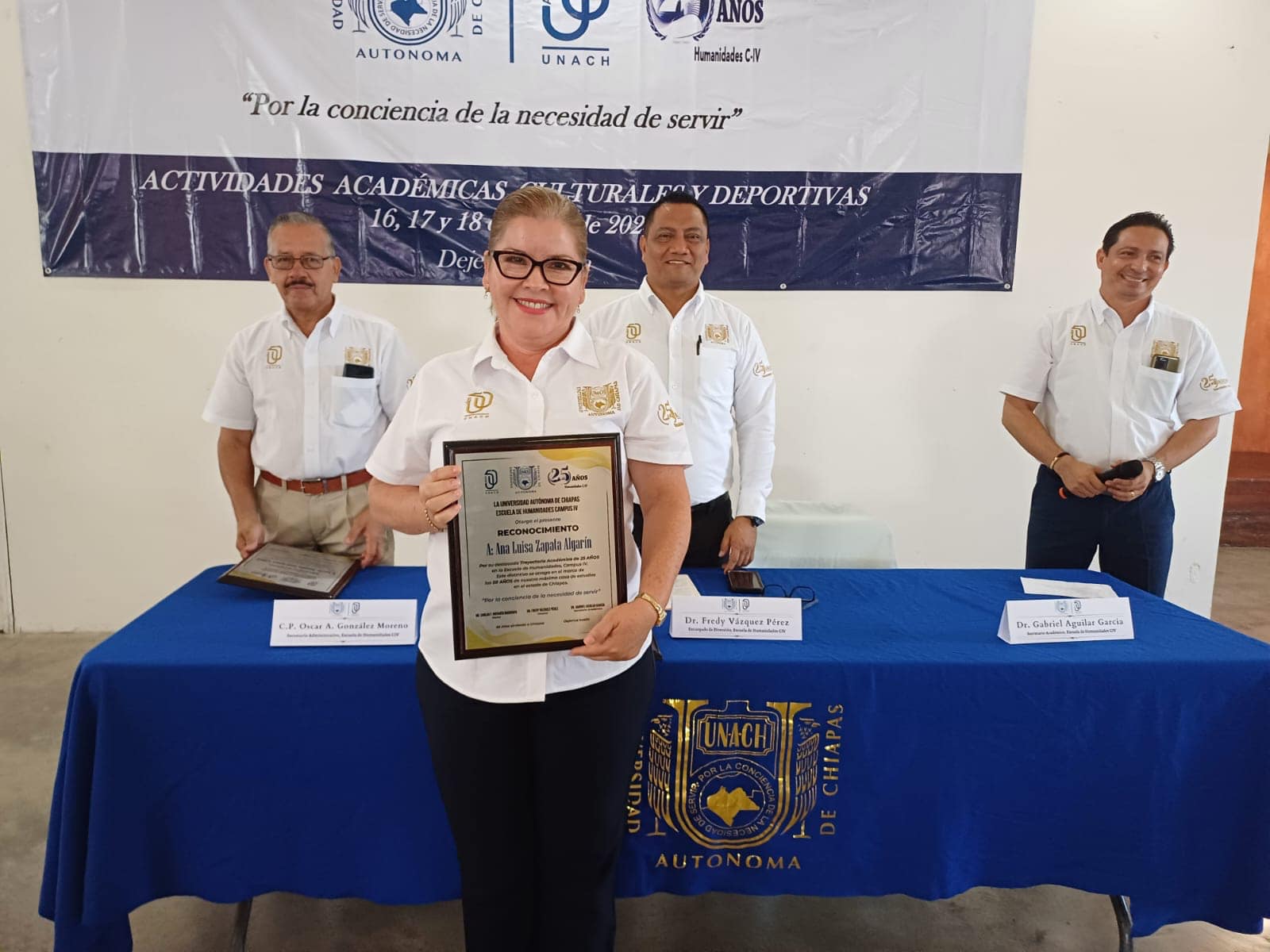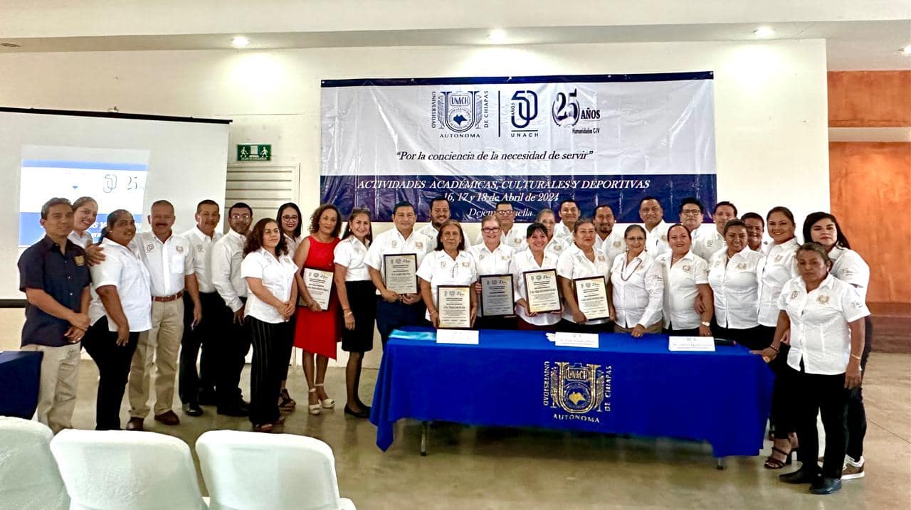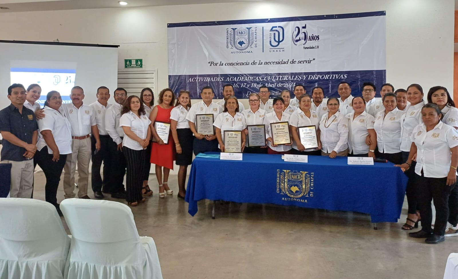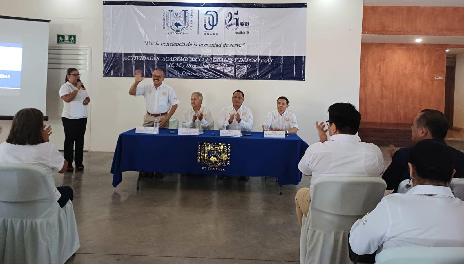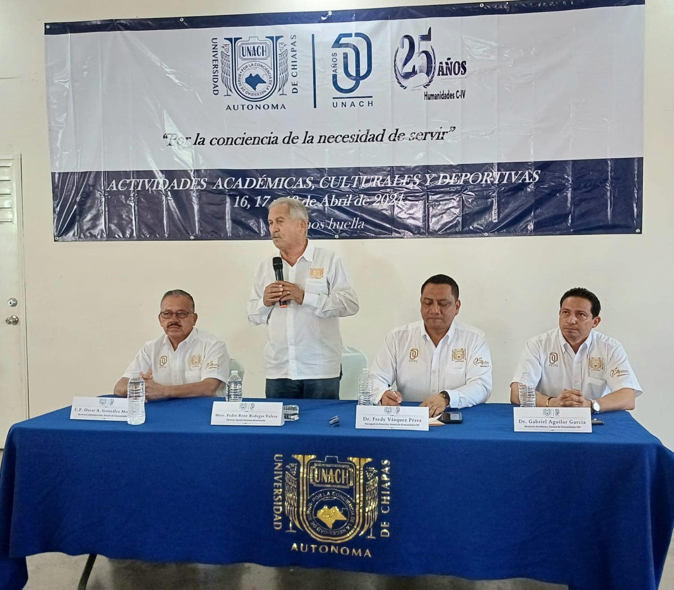 En conmemoración de los 50 Años de existencia de la Universidad Autónoma de Chiapas, la Escuela de Humanidades, Campus IV, celebra un cuarto de siglo, con una serie de eventos académicos, culturales y deportivos, los días 16, 17 y 18 de abril. En la bienvenida del acto inaugural, el Dr. Fredy Vázquez Pérez, Encargado de la Dirección, expresó su gratitud y felicitaciones a la comunidad universitaria por su compromiso y dedicación en mantener a la universidad como una de la mejor universidad del sureste del país. Se contó con la presencia del ex rector Mtro. Pedro René Bodegas Valera, en representación del Rector Dr. Carlos F.