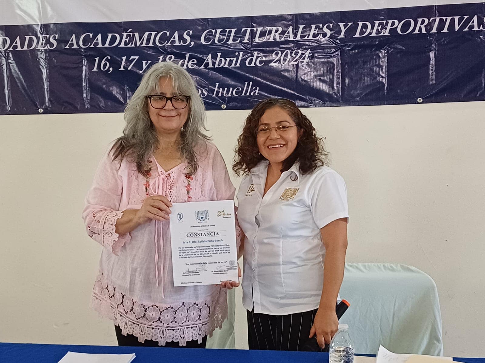 "Las humanidades ante los desafíos del siglo XXI", dictada por Dra. Leticia Pons Bonals; y la de “Salud mental…” impartida por la Mtra. Gabriela Alcalá. En este primer día de actividades matutino, también se hizo entrega de reconocimiento a la Trayectoria Académica a profesor@s con 25 Años de servicio.